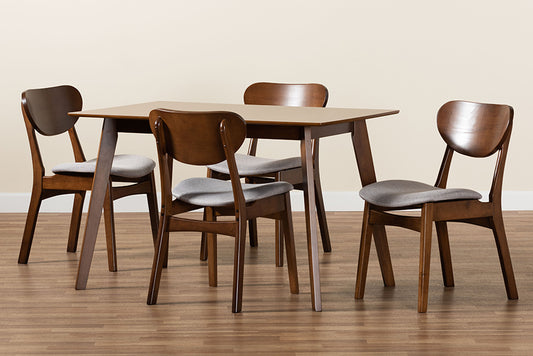 Baxton Studio Ramiro Modern and Contemporary Gr... Baxton Studio Ramiro Modern and Contemporary Grey Fabric Upholstered and Walnut Brown Finished Wood 5-Piece Dining Set