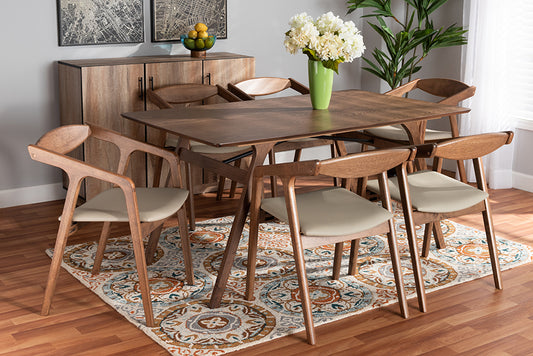 Baxton Studio Harland Mid-Century Modern Grey F... Baxton Studio Harland Mid-Century Modern Grey Faux Leather Upholstered and Walnut Brown Finished Wood 7-Piece Dining Set