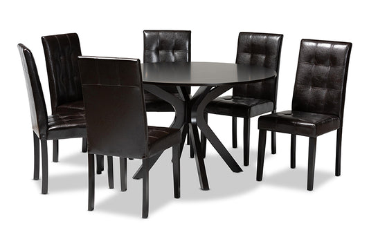 Baxton Studio Marie Modern and Contemporary Dar... Baxton Studio Marie Modern and Contemporary Dark Brown Faux Leather Upholstered and Dark brown Finished Wood 7-Piece Dining Set