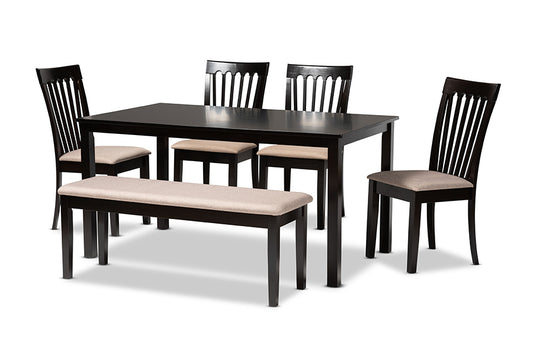 Baxton Studio Minette Modern and contemporary S... Baxton Studio Minette Modern and contemporary Sand Fabric Upholstered and Dark Brown Finished Wood 6-Piece Dining Set