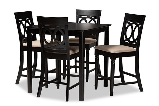 Baxton Studio Verina Modern and Contemporary Sa... Baxton Studio Verina Modern and Contemporary Sand Fabric Upholstered Espresso Brown Finished 5-Piece Wood Pub Set