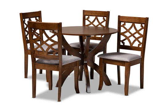 Baxton Studio Alicia Modern and Contemporary Gr... Baxton Studio Alicia Modern and Contemporary Grey Fabric Upholstered and Walnut Brown Finished Wood 5-Piece Dining Set