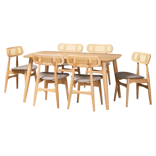 Baxton Studio Dannon Mid-Century Modern Grey Fa... Baxton Studio Dannon Mid-Century Modern Grey Fabric and Natural Oak Finished Wood 7-Piece Dining Set