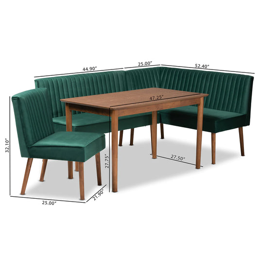 Baxton Studio Alvis Mid-Century Modern Emerald ... Baxton Studio Alvis Mid-Century Modern Emerald Green Velvet Upholstered And Walnut Brown Finished Wood 4-Piece Dining Nook Set