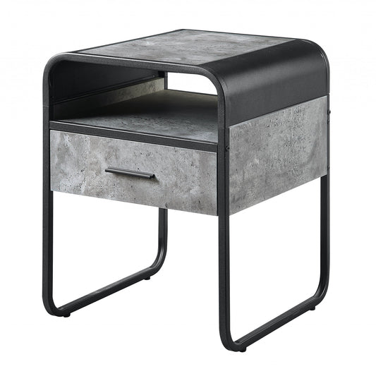 22" Black And Concrete Gray Manufactured Wood A... 22" Black And Concrete Gray Manufactured Wood And Metal Square End Table With Drawer And Shelf By Homeroots