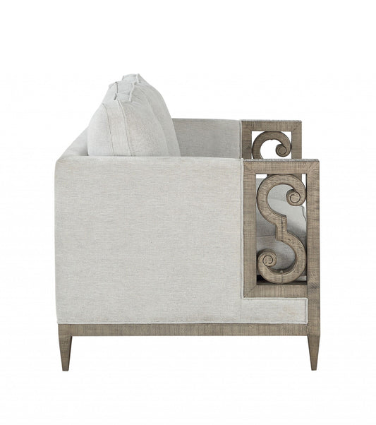 35' X 69' X 42' Gray Fabric Antique White Uphol... 35' X 69' X 42' Gray Fabric Antique White Upholstery Poly Resin Loveseat w2 Pillows By Homeroots