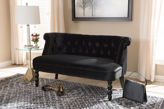 Baxton Studio Flax Victorian Style Contemporary... Baxton Studio Flax Victorian Style Contemporary Black Velvet Fabric Upholstered 2-seater Loveseat