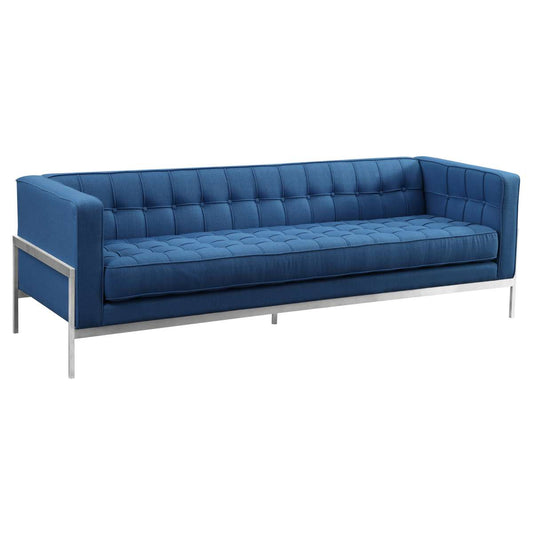 Andre Contemporary Sofa in Brushed Stainless St... Andre Contemporary Sofa in Brushed Stainless Steel and Blue Fabric By Armen Living