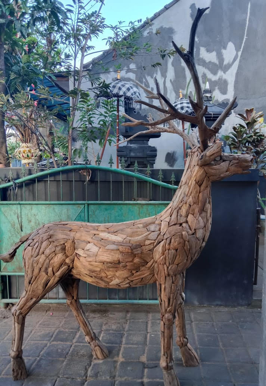 Driftwood Stag with Antlers| Large size Teak Ro... Driftwood Stag with Antlers| Large size Teak Root Sculpture| 6.5 Ft Height | Weatherproof Reclaimed Wood Garden Statue from Artisan Living