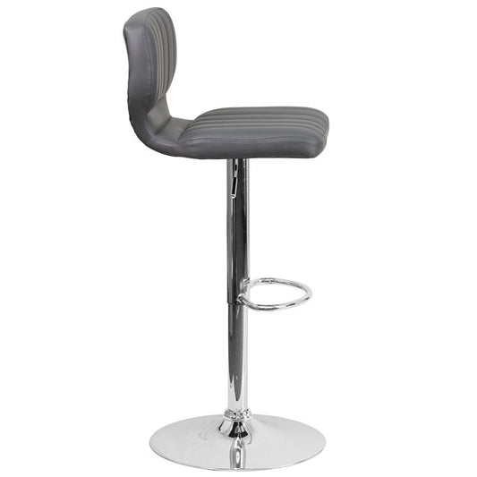 Contemporary Gray Vinyl Adjustable Height Barst... Contemporary Gray Vinyl Adjustable Height Barstool With Vertical Stitch Back And Chrome Base By Flash Furniture