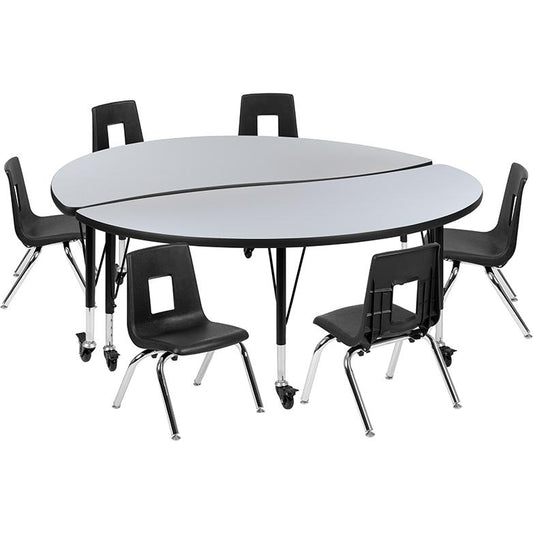 Mobile 60" Circle Wave Collaborative Laminate A... Mobile 60" Circle Wave Collaborative Laminate Activity Table Set With 14" Student Stack Chairs, Grey/Black By Flash Furniture