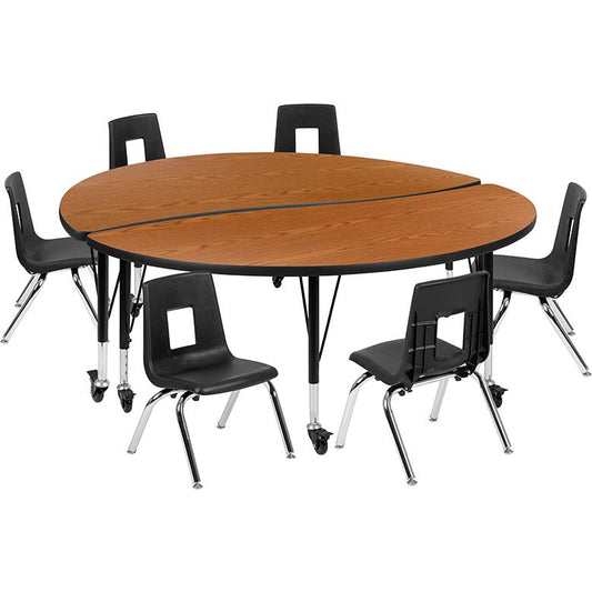 Mobile 60" Circle Wave Collaborative Laminate A... Mobile 60" Circle Wave Collaborative Laminate Activity Table Set With 14" Student Stack Chairs, Oak/Black By Flash Furniture