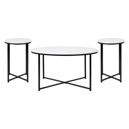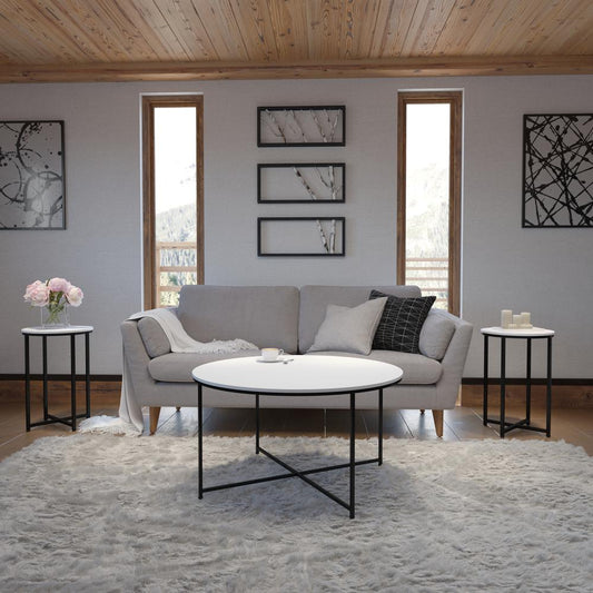 Hampstead Collection Coffee And End Table Set -... Hampstead Collection Coffee And End Table Set - White Laminate Top With Matte Black Crisscross Frame, 3 Piece Table Set By Flash Furniture
