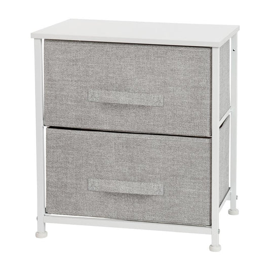 2 Drawer Wood Top White Nightstand Storage Orga... 2 Drawer Wood Top White Nightstand Storage Organizer With Cast Iron Frame And Light Gray Easy Pull Fabric Drawers By Flash Furniture