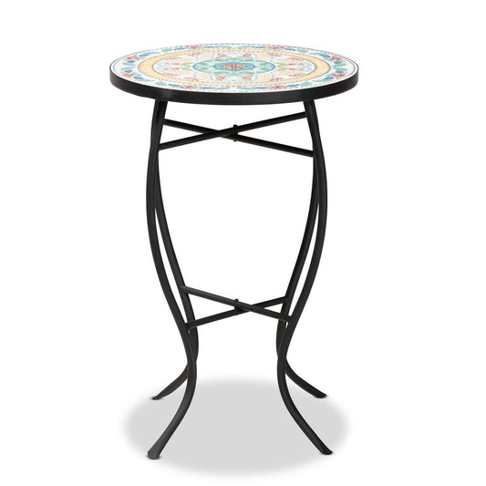 Baxton Studio Kaden Modern and Contemporary Mul... Baxton Studio Kaden Modern and Contemporary Multi-Colored Glass and Black Metal Outdoor Side Table
