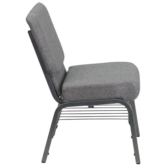 Hercules Series 21''W Church Chair In Gray Fabr... Hercules Series 21''W Church Chair In Gray Fabric With Book Rack - Silver Vein Frame By Flash Furniture