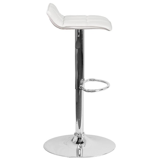 Contemporary White Vinyl Adjustable Height Bars... Contemporary White Vinyl Adjustable Height Barstool With Quilted Wave Seat And Chrome Base By Flash Furniture