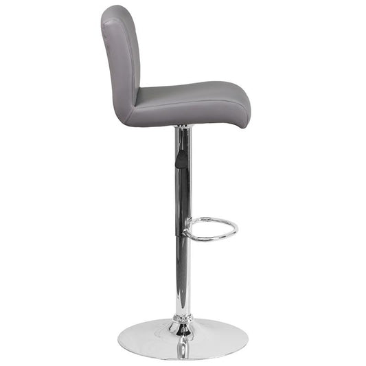 Contemporary Gray Vinyl Adjustable Height Barst... Contemporary Gray Vinyl Adjustable Height Barstool With Curved Back And Chrome Base By Flash Furniture