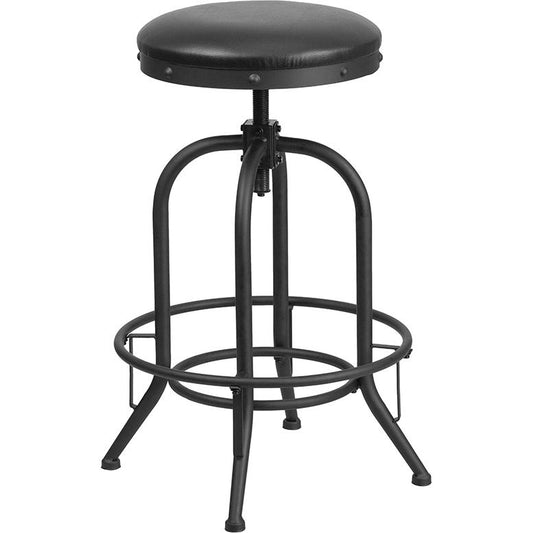 Contemporary Black Vinyl Adjustable Height Bars... Contemporary Black Vinyl Adjustable Height Barstool With Barrel Back And Chrome Base By Flash Furniture
