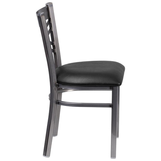 Hercules Series Clear Coated ''X'' Back Metal R... Hercules Series Clear Coated ''X'' Back Metal Restaurant Chair - Black Vinyl Seat By Flash Furniture