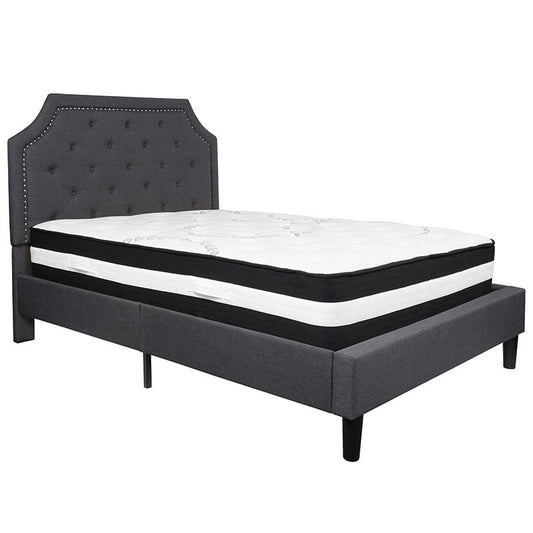 Brighton Full Size Tufted Upholstered Platform ... Brighton Full Size Tufted Upholstered Platform Bed In Dark Gray Fabric With Pocket Spring Mattress By Flash Furniture