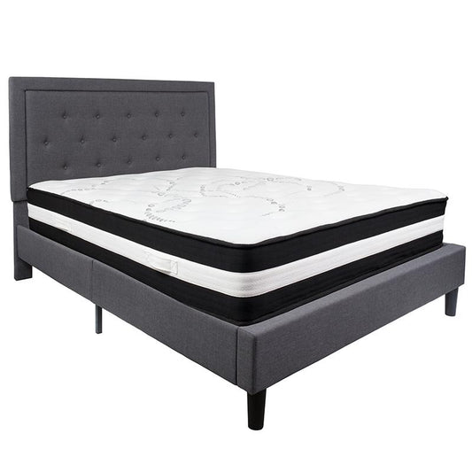 Roxbury Queen Size Tufted Upholstered Platform ... Roxbury Queen Size Tufted Upholstered Platform Bed In Dark Gray Fabric With Pocket Spring Mattress By Flash Furniture