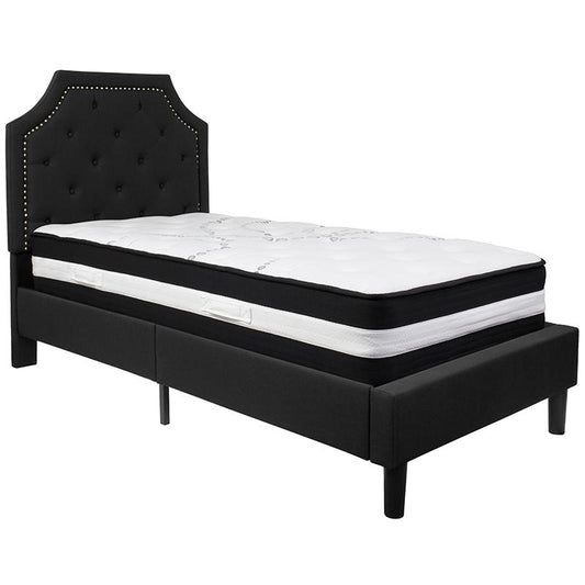 Brighton Twin Size Tufted Upholstered Platform ... Brighton Twin Size Tufted Upholstered Platform Bed In Black Fabric With Pocket Spring Mattress By Flash Furniture
