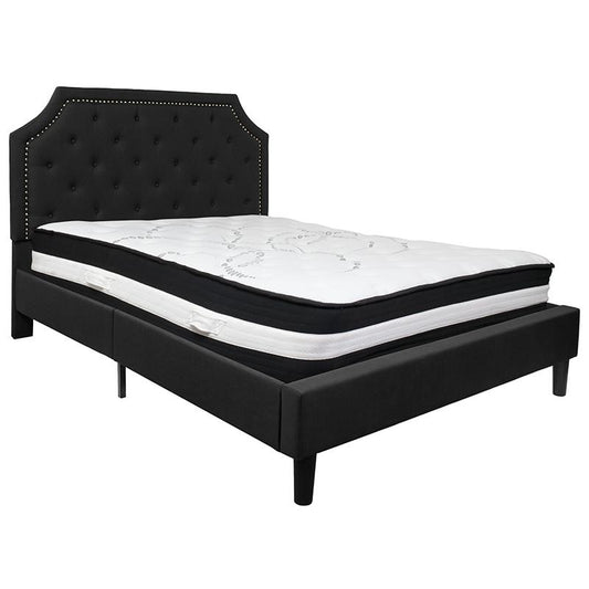 Brighton Queen Size Tufted Upholstered Platform... Brighton Queen Size Tufted Upholstered Platform Bed In Black Fabric With Pocket Spring Mattress By Flash Furniture