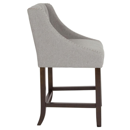 Carmel Series 24" High Transitional Tufted Waln... Carmel Series 24" High Transitional Tufted Walnut Counter Height Stool With Accent Nail Trim In Light Gray Fabric By Flash Furniture