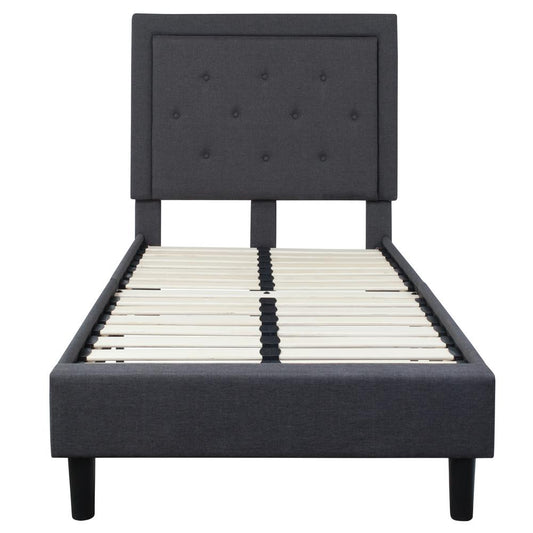 Roxbury Twin Size Tufted Upholstered Platform B... Roxbury Twin Size Tufted Upholstered Platform Bed In Dark Gray Fabric By Flash Furniture