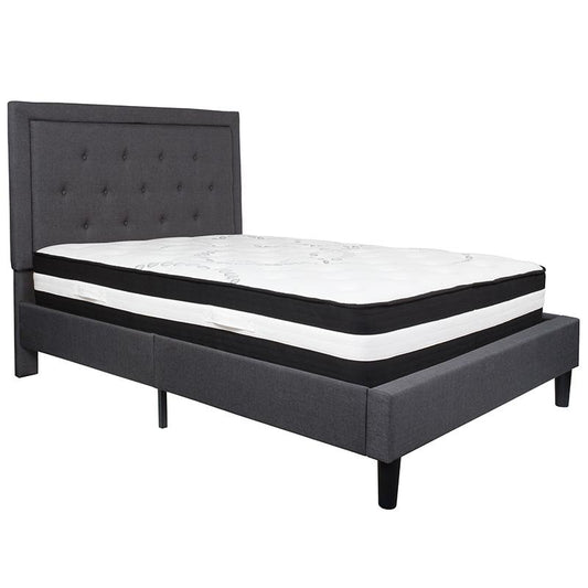 Roxbury Full Size Tufted Upholstered Platform B... Roxbury Full Size Tufted Upholstered Platform Bed In Dark Gray Fabric With Pocket Spring Mattress By Flash Furniture