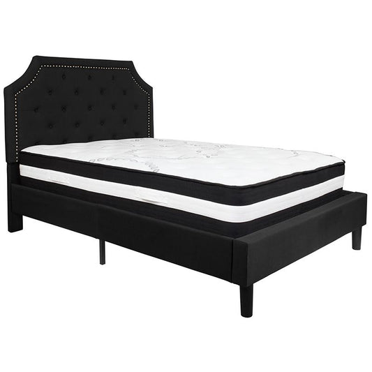 Brighton Full Size Tufted Upholstered Platform ... Brighton Full Size Tufted Upholstered Platform Bed In Black Fabric With Pocket Spring Mattress By Flash Furniture
