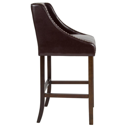 Carmel Series 30" High Transitional Tufted Waln... Carmel Series 30" High Transitional Tufted Walnut Barstool With Accent Nail Trim In Brown Leathersoft By Flash Furniture