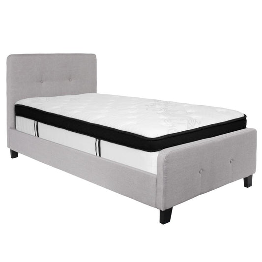 Tribeca Twin Size Tufted Upholstered Platform B... Tribeca Twin Size Tufted Upholstered Platform Bed In Light Gray Fabric With Memory Foam Mattress By Flash Furniture