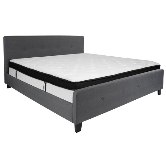 Tribeca King Size Tufted Upholstered Platform B... Tribeca King Size Tufted Upholstered Platform Bed In Dark Gray Fabric With Memory Foam Mattress By Flash Furniture