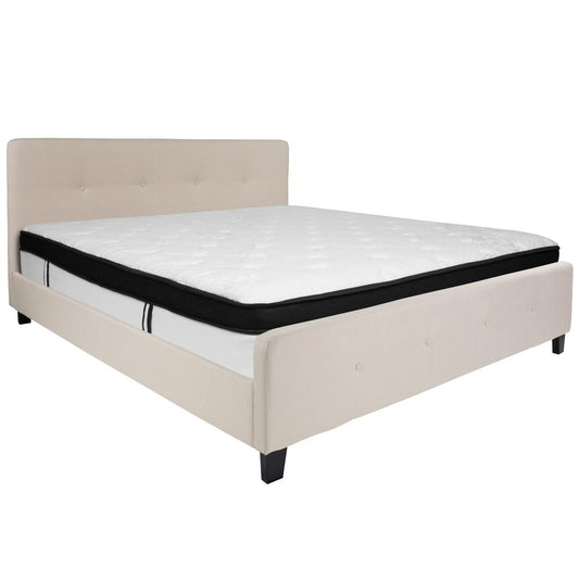Tribeca King Size Tufted Upholstered Platform B... Tribeca King Size Tufted Upholstered Platform Bed In Beige Fabric With Memory Foam Mattress By Flash Furniture