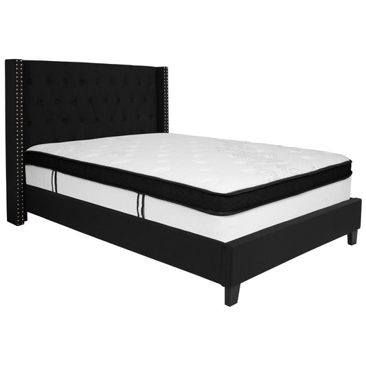Riverdale Full Size Tufted Upholstered Platform... Riverdale Full Size Tufted Upholstered Platform Bed In Black Fabric With Memory Foam Mattress By Flash Furniture