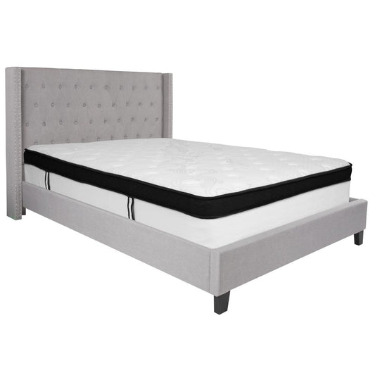 Riverdale Queen Size Tufted Upholstered Platfor... Riverdale Queen Size Tufted Upholstered Platform Bed In Light Gray Fabric With Memory Foam Mattress By Flash Furniture