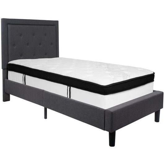Roxbury Twin Size Tufted Upholstered Platform B... Roxbury Twin Size Tufted Upholstered Platform Bed In Dark Gray Fabric With Memory Foam Mattress By Flash Furniture
