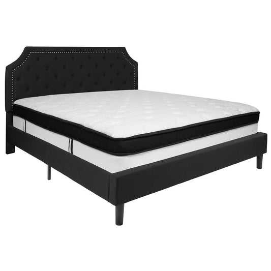 Brighton King Size Tufted Upholstered Platform ... Brighton King Size Tufted Upholstered Platform Bed In Black Fabric With Memory Foam Mattress By Flash Furniture