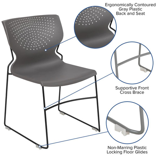 Hercules Series 880 Lb. Capacity Gray Full Back... Hercules Series 880 Lb. Capacity Gray Full Back Contoured Stack Chair With Black Powder Coated Sled Base By Flash Furniture
