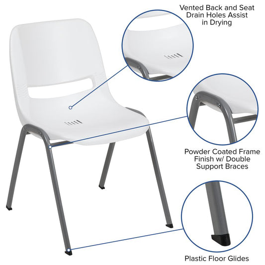 Hercules Series 880 Lb. Capacity White Ergonomi... Hercules Series 880 Lb. Capacity White Ergonomic Shell Stack Chair With Gray Frame By Flash Furniture