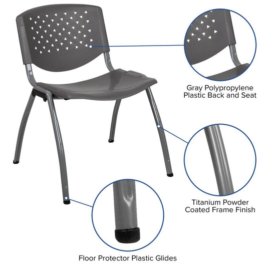 Hercules Series 880 Lb. Capacity Gray Plastic S... Hercules Series 880 Lb. Capacity Gray Plastic Stack Chair With Titanium Gray Powder Coated Frame By Flash Furniture