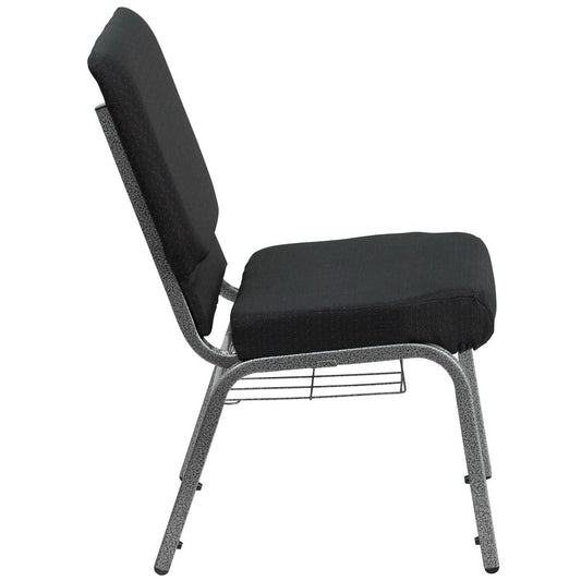 Hercules Series 18.5''W Church Chair In Black P... Hercules Series 18.5''W Church Chair In Black Patterned Fabric With Cup Book Rack - Silver Vein Frame By Flash Furniture