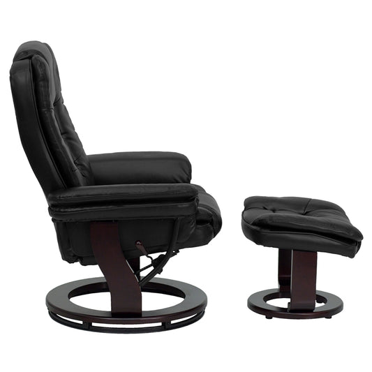 Contemporary Multi-Position Recliner With Horiz... Contemporary Multi-Position Recliner With Horizontal Stitching And Ottoman With Swivel Mahogany Wood Base In Black Leathersoft By Flash Furniture