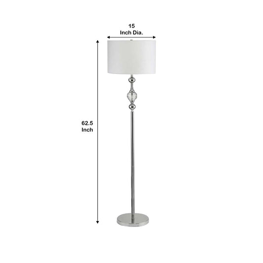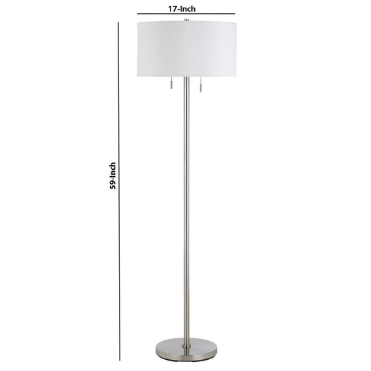 Metal Body Floor Lamp With Fabric Drum Shade An... Metal Body Floor Lamp With Fabric Drum Shade And Pull Chain Switch, Silver By Benzara