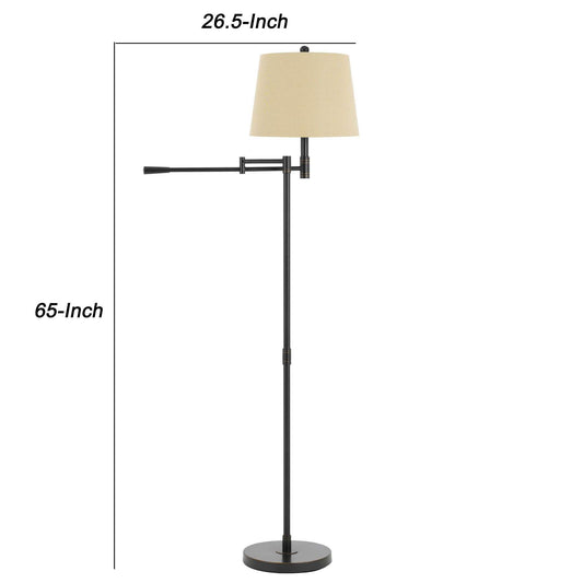 Metal Floor Lamp With Swing Arm And Tubular Sta... Metal Floor Lamp With Swing Arm And Tubular Stand, Beige And Black By Benzara