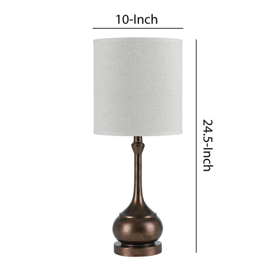 Elongated Bellied Shape Metal Accent Lamp With ... Elongated Bellied Shape Metal Accent Lamp With Drum Shade, Rustic Bronze By Benzara