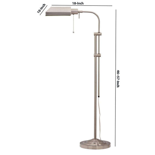 150 Watt Metal Floor Lamp With Swing Arm And Fa... 150 Watt Metal Floor Lamp With Swing Arm And Fabric Conical Shade, Silver By Benzara