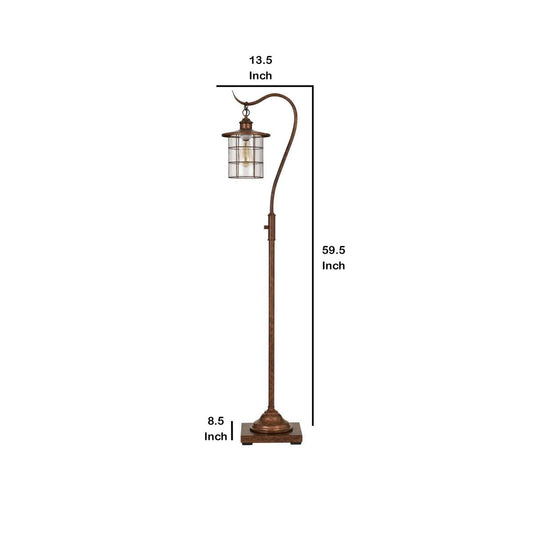 60 Inch Metal Downbridge Design Floor Lamp With... 60 Inch Metal Downbridge Design Floor Lamp With Caged Shade, Rustic Bronze By Benzara